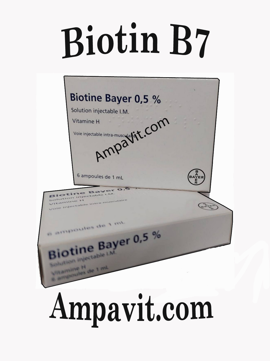 Biotine Bayer 0.5% 6 x 1 ML ampoules for Intramuscular use only. Expiry: 2027. Please note, delivery times differ from 7 to 14 days for UK deliveries. Ordering in Advance avoids delays.